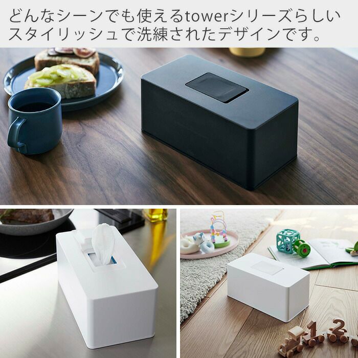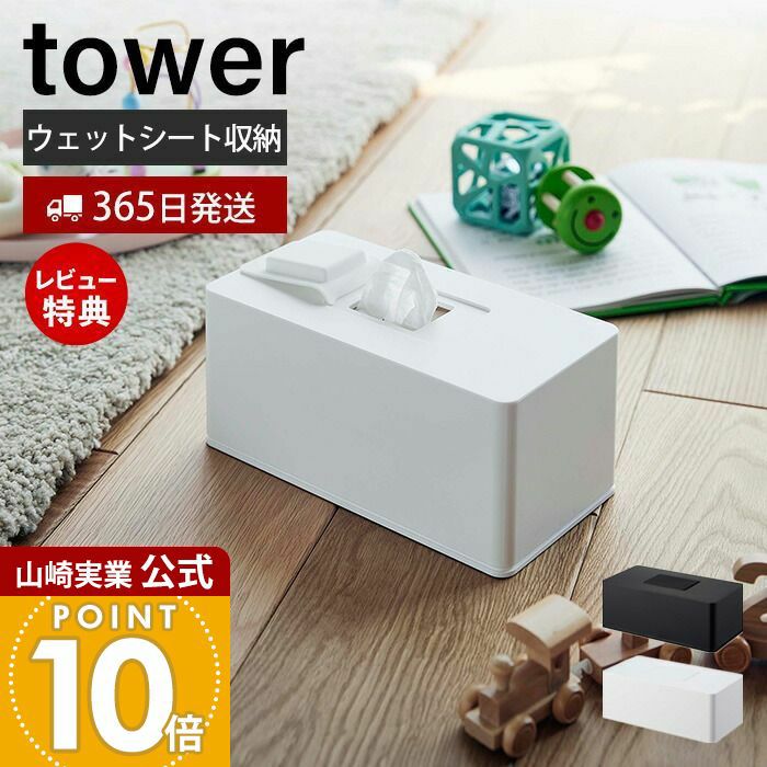 山崎実業 公式 住居用ウェットクリーナーシート&おしり拭きケース タワー