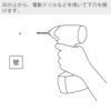 STEP2 印の上から、電動ドリルなどを用いて下穴を開けます。(電動ドリルはお客様でご用意ください。) ※直径2mmの下穴を開けてください。