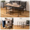 棚が2段あり収納スペースとして活躍。ティッシュやリモコン、雑誌など日常ひんぱんに使うものを置くのにぴったりなスペース。また、折りたたんだテーブルが目隠しにもなります。