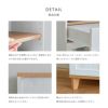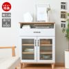 レトロな型板ガラス越しにぼんやり映る収納が、空間をやさしくアップグレードしてくれます。 背面まで美しく仕上げているので、お部屋の間仕切りとしても活躍。 天板までの高さはちょうどいい90cm。作業台としても使いやすいサイズ感がうれしいポイントです。 さらに、脚下10cmの空間が生む“抜け感”で、お部屋を広く見せてくれるマジカル効果も◎。 木目調のホワイトとナチュラル天板のコンビネーションが、空間にやさしく馴染むREBISTO(リビスト)シリーズ。 北欧テイスト、フレンチカントリー、ナチュラルスタイルがお好きな方におすすめです。