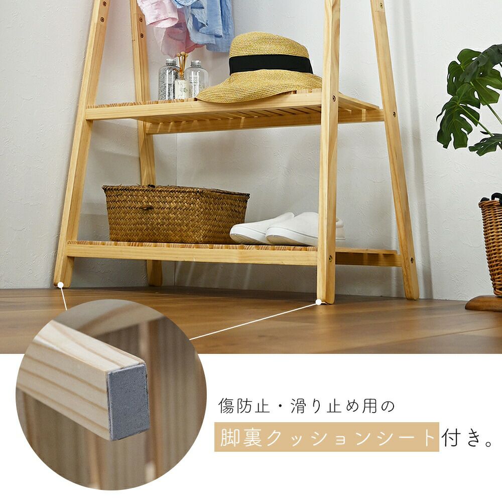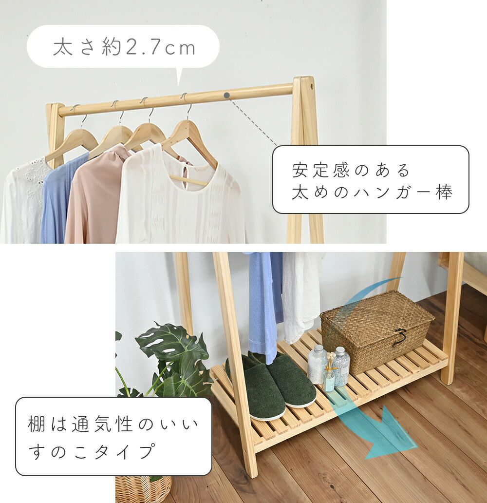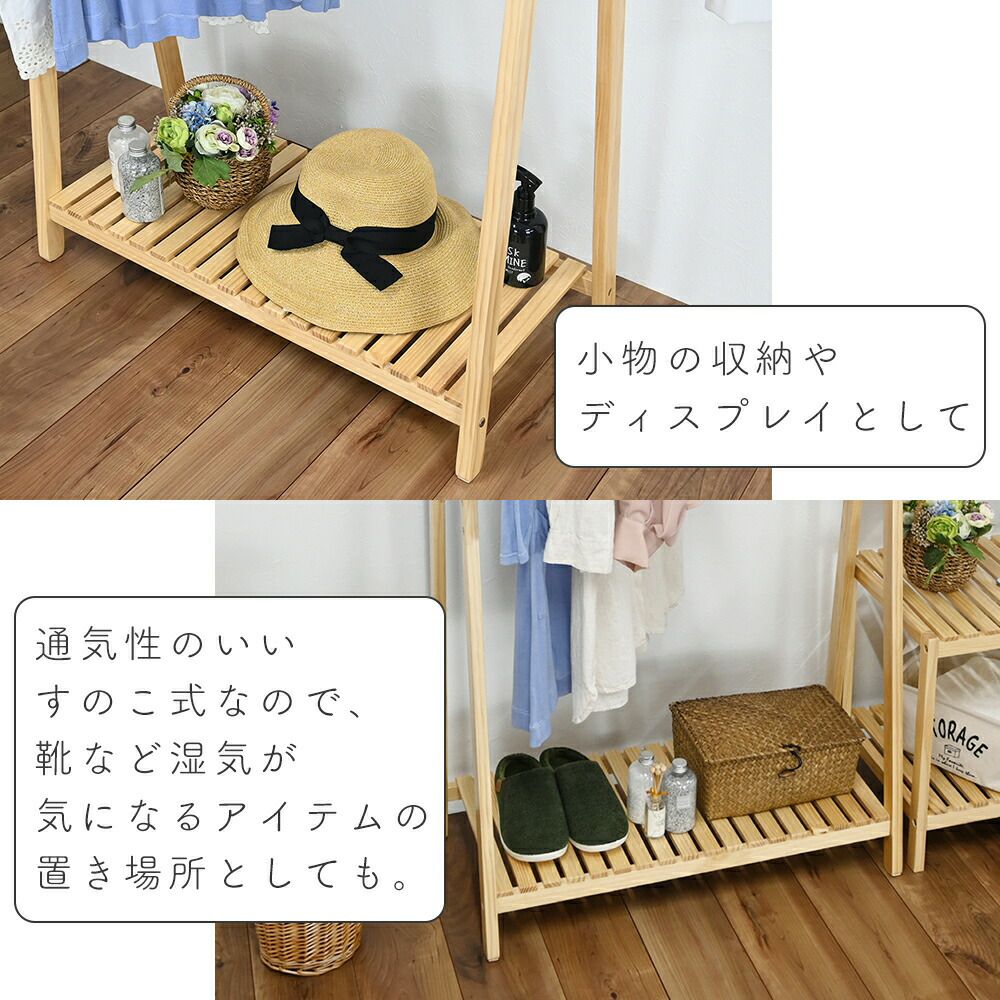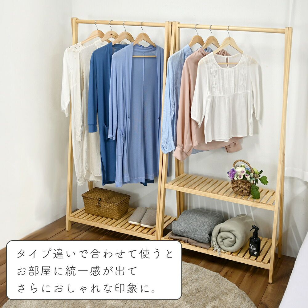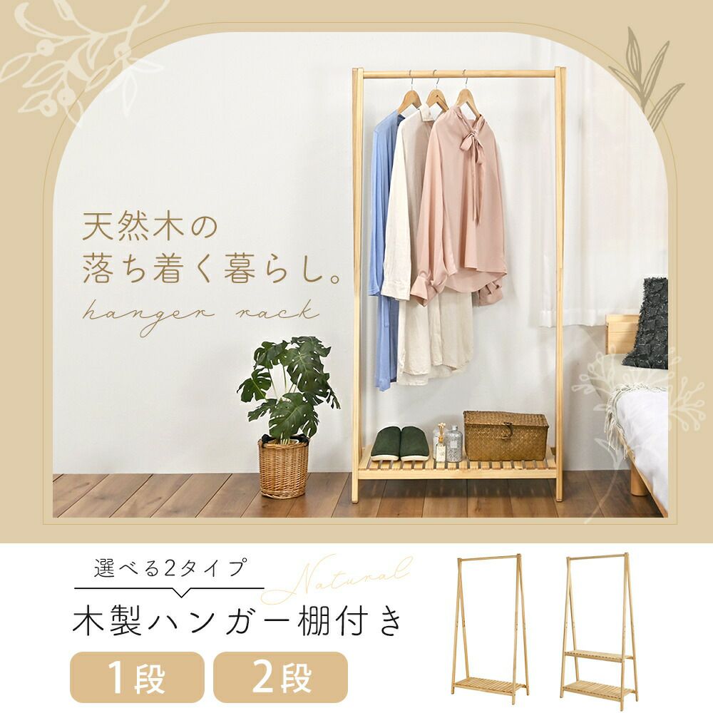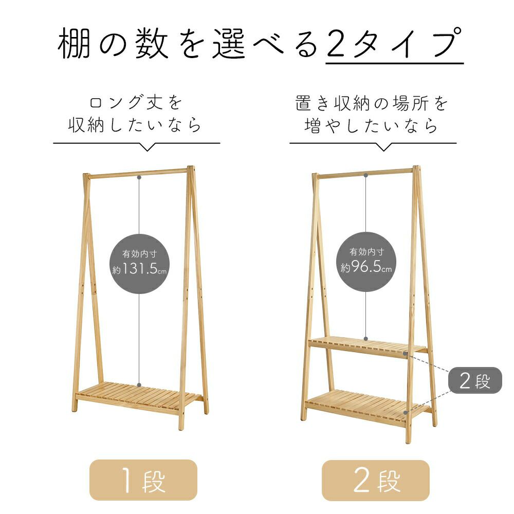 木製ハンガー棚付き1段