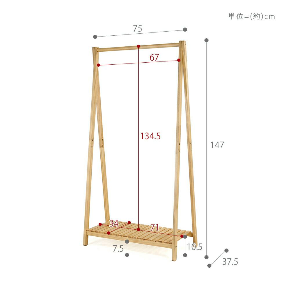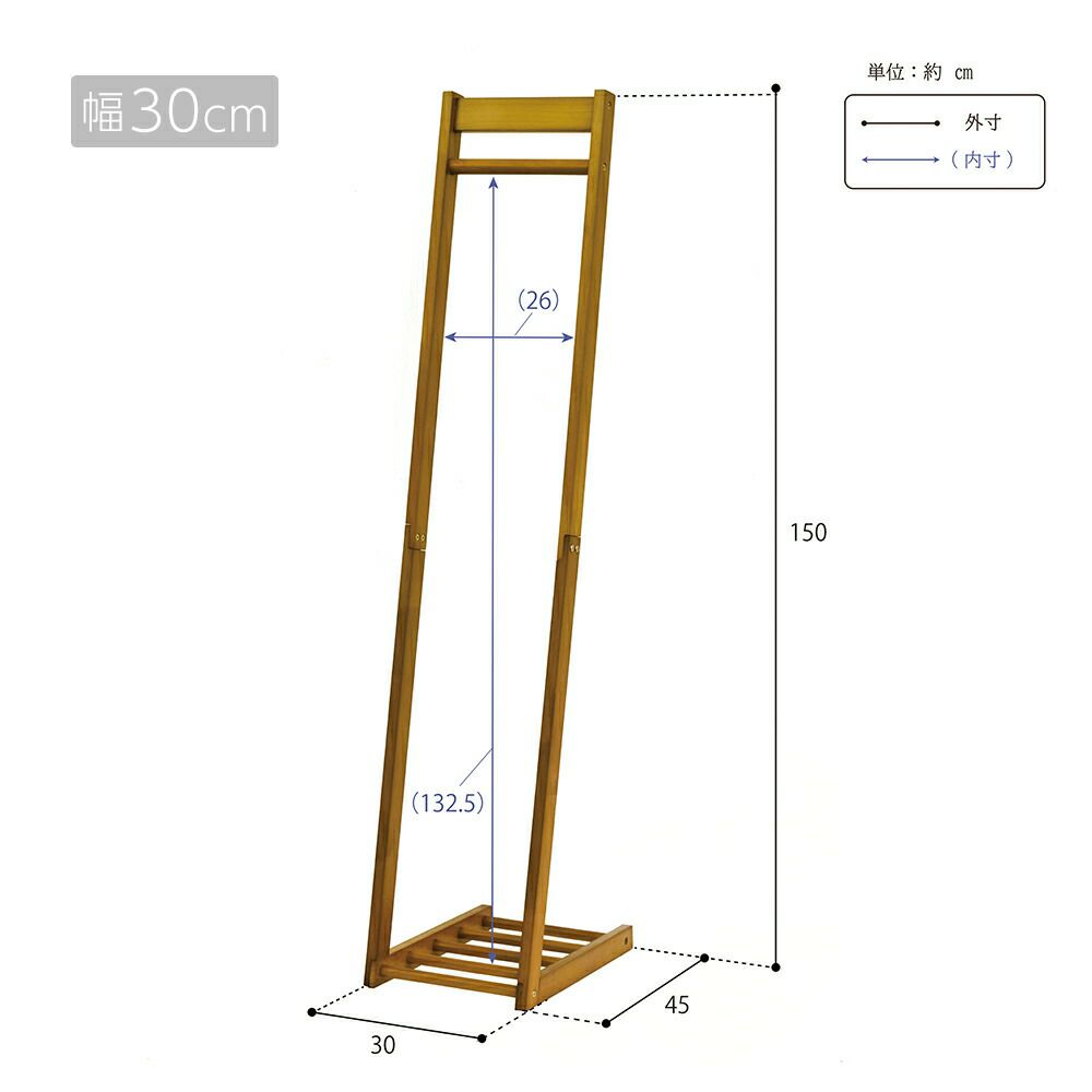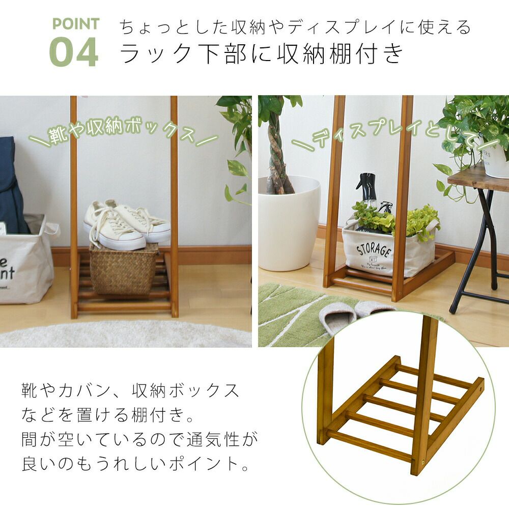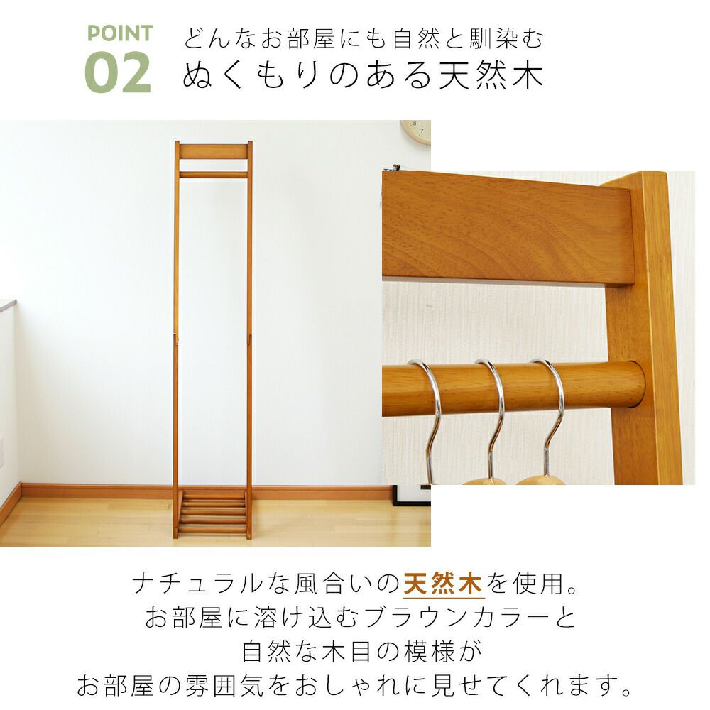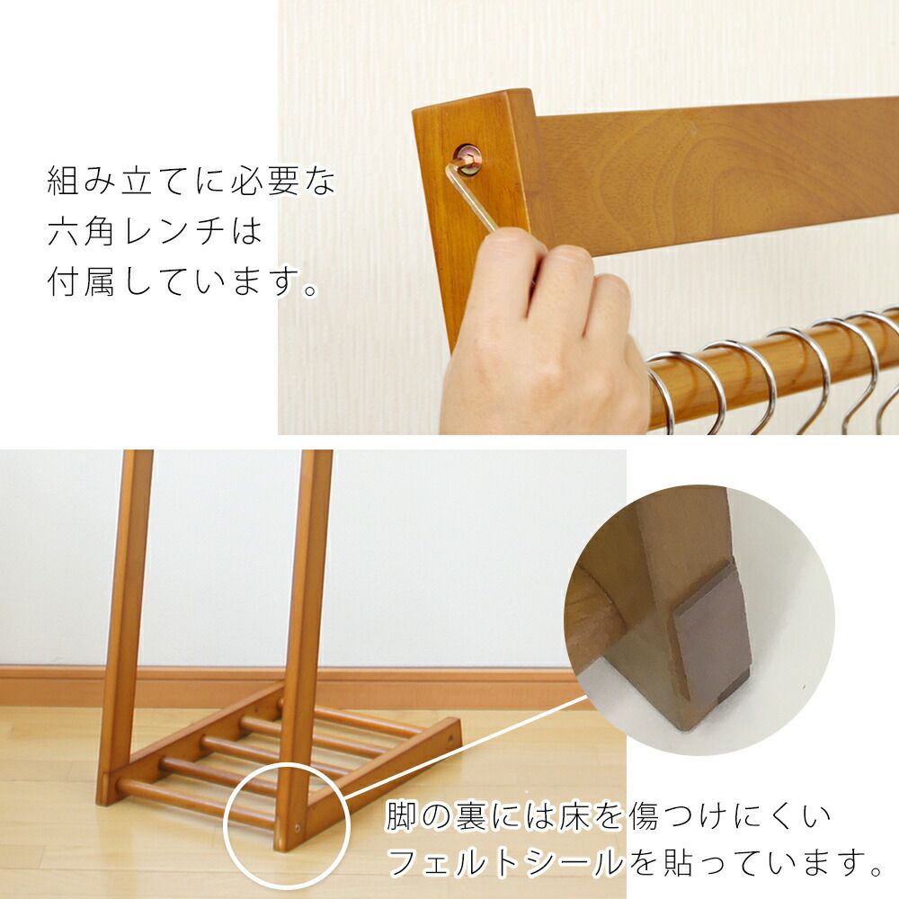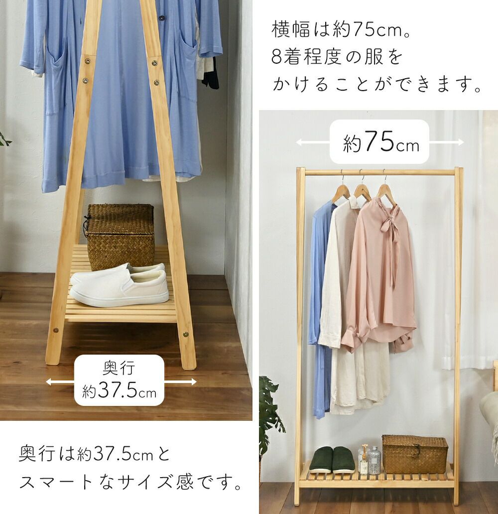 木製ハンガー棚付き1段