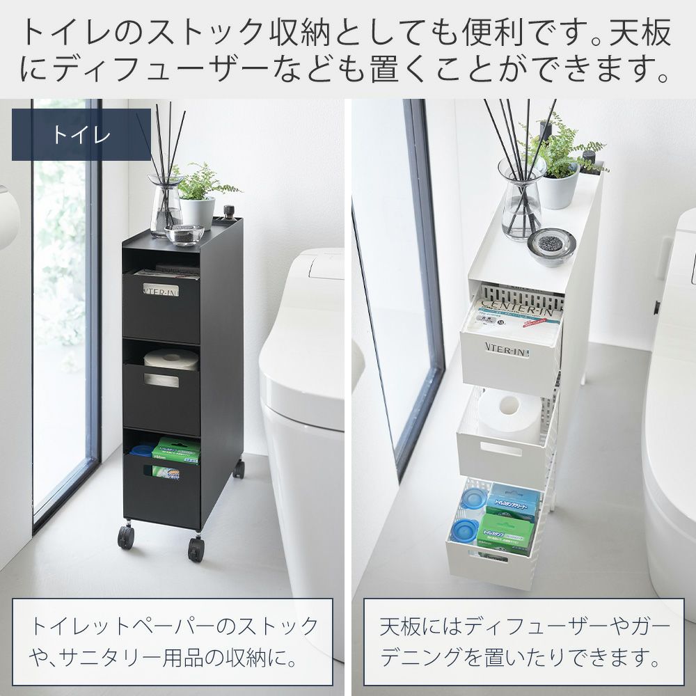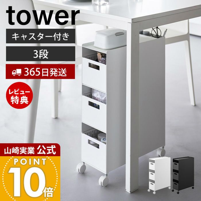 山崎実業 公式 収納バスケットワゴン 3段 タワー