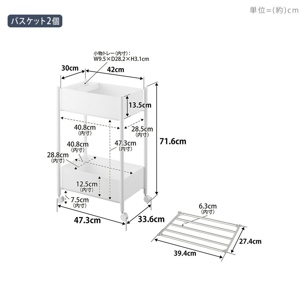 山崎実業 公式 小物トレー付き収納ワゴン 2段 リン