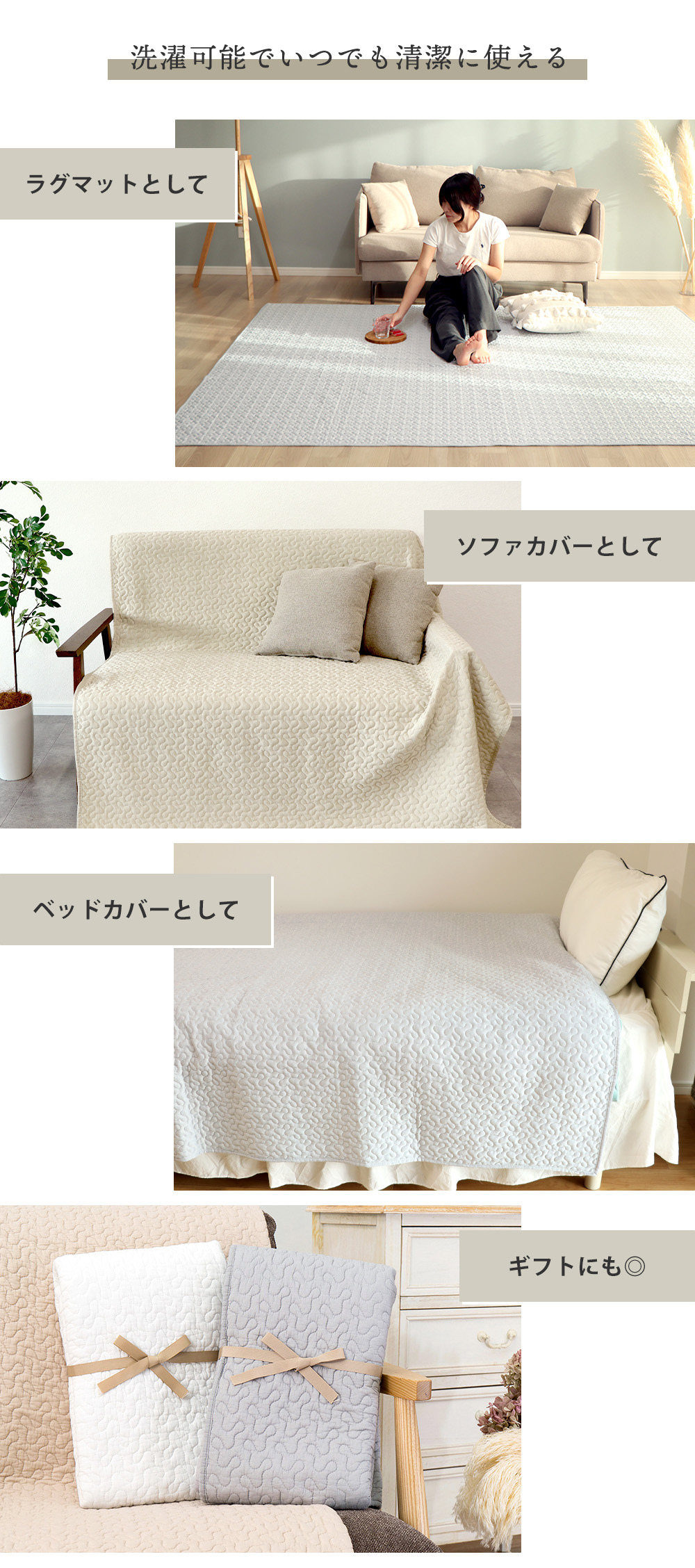 よく検索されるキーワード ラグ キルトラグ 洗濯機対応 洗濯 洗える ウォッシャブル 冷感 涼しい 冷たい ひんやり 夏用 オールシーズン 中綿 低ホルムアルデヒド 滑りどめ 防滑 赤ちゃん ベビー マット ベージュ グレー ブルー グリーン ブラウン