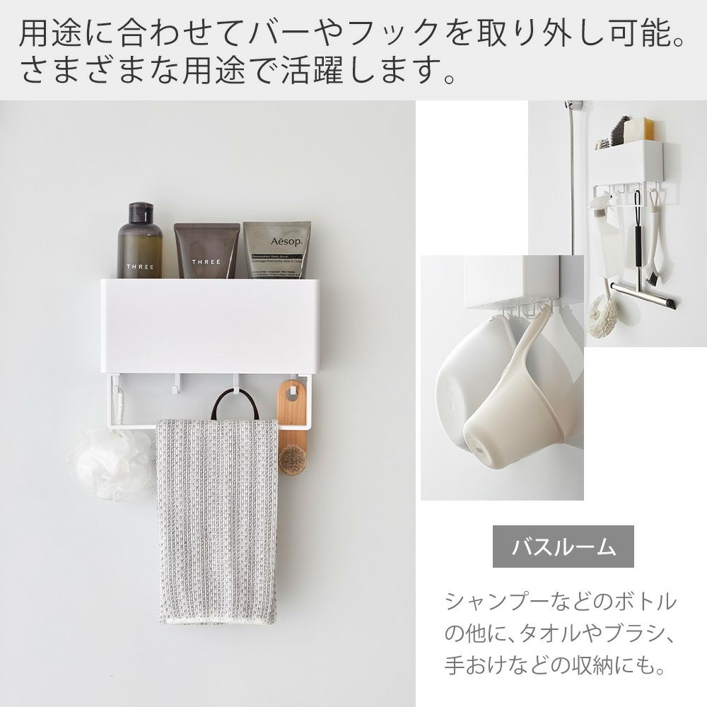 山崎実業 公式 マグネットストレージバスケット タオルバー&ホースフック付き プレート