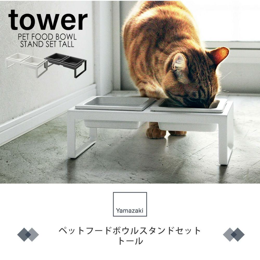 山崎実業 公式 ペットフードボウルスタンド タワー トール