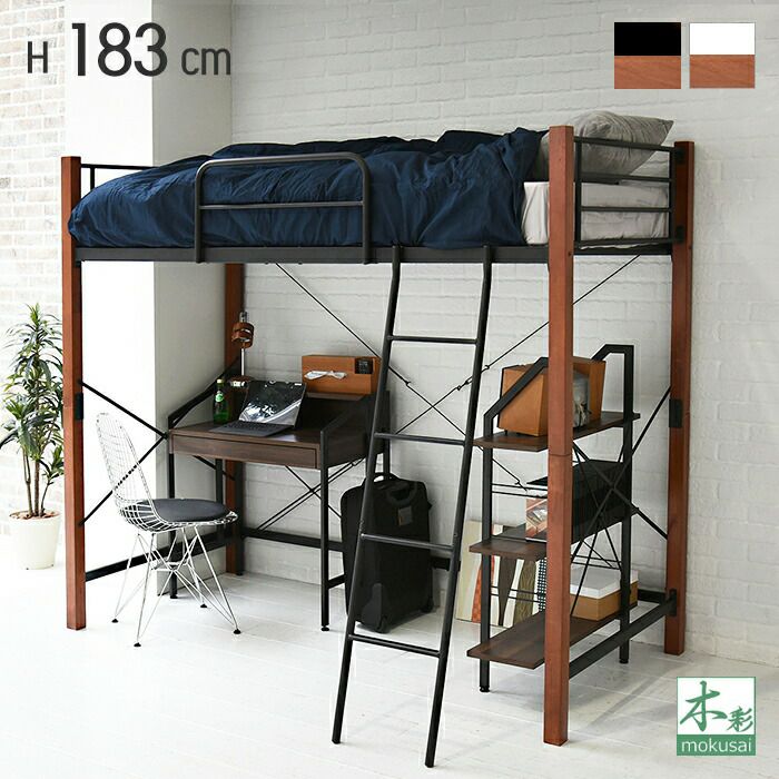 天然木脚パイプベッド ロフトタイプ IRI-1043SET