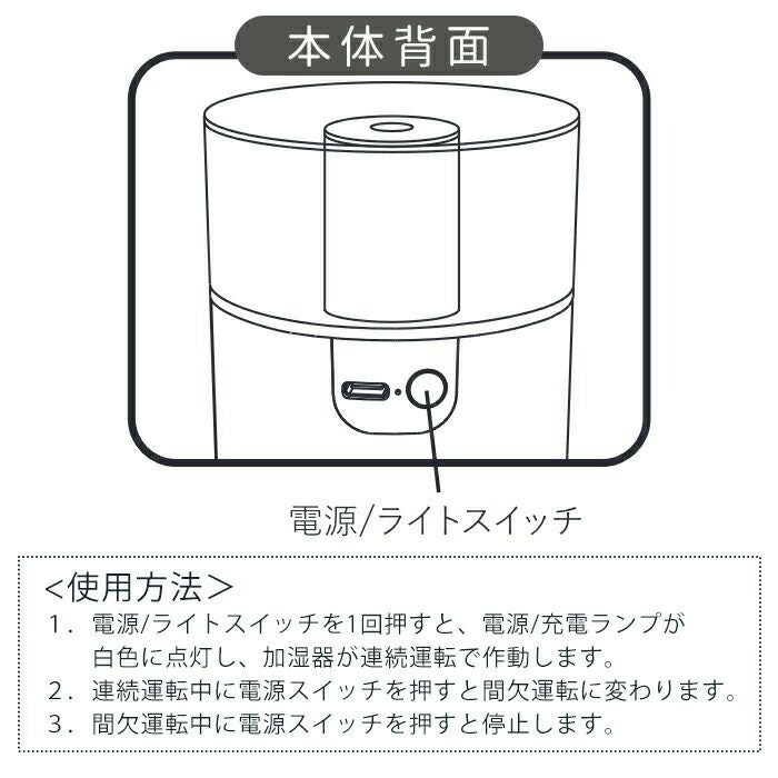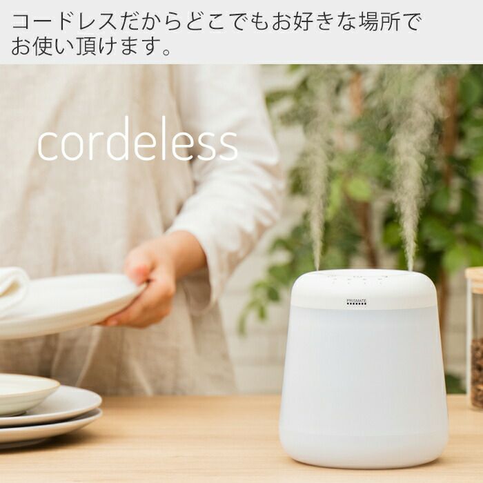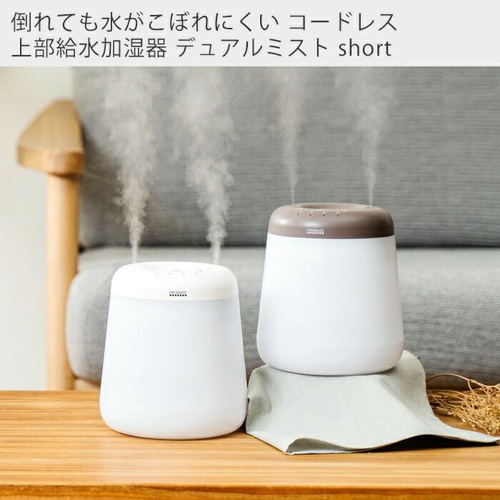 倒れても水がこぼれにくいコードレス加湿器デュアルミスト short