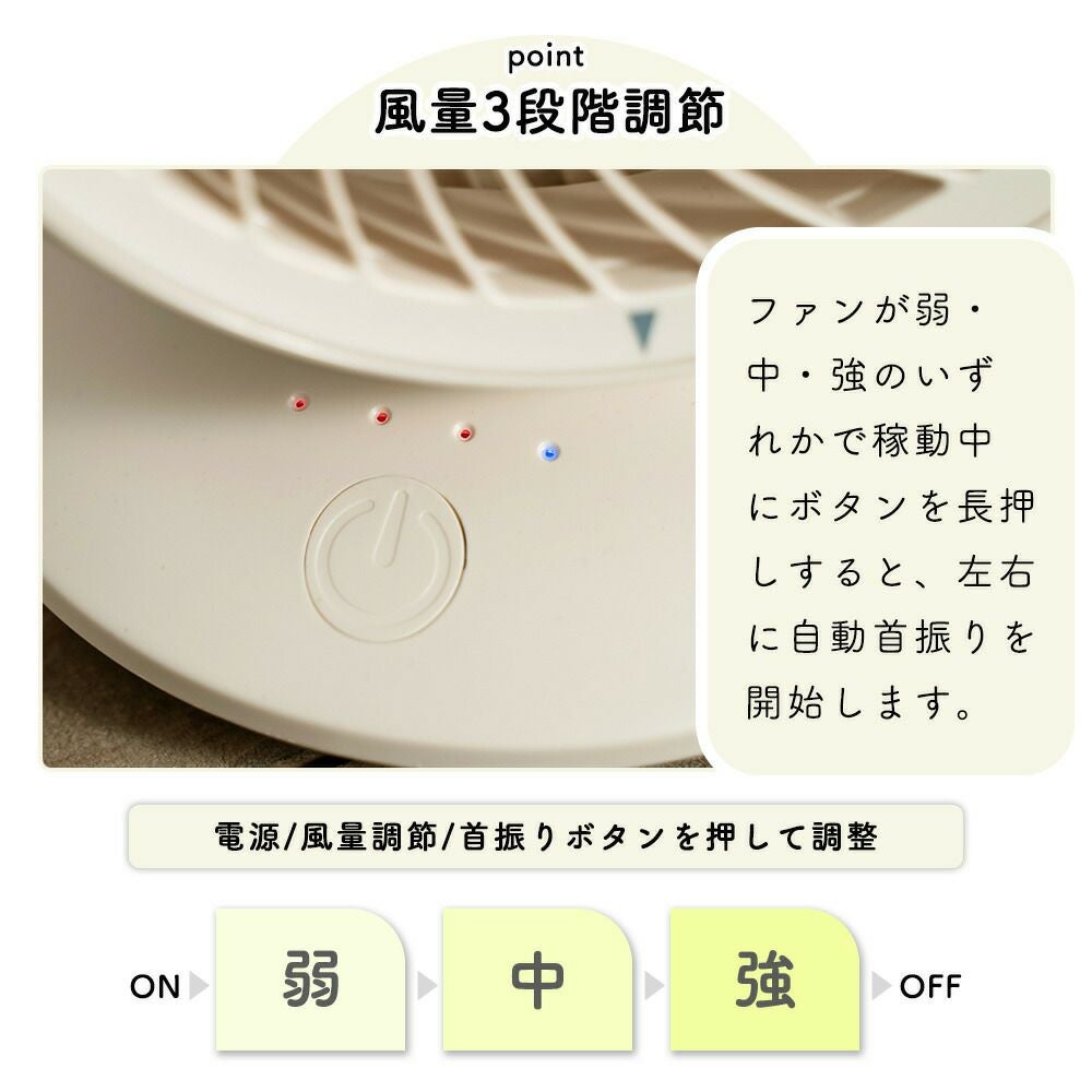PBAF005 ラウンドミニデスクファン 首振り機能付