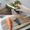 マーナのきほんのキッチンツール小回りのきくピーラー手になじんで動かしやすく、芽取りもスムーズにできるピーラーです。剥いた皮が張り付くことなく、下に向かってするんと落ちます。