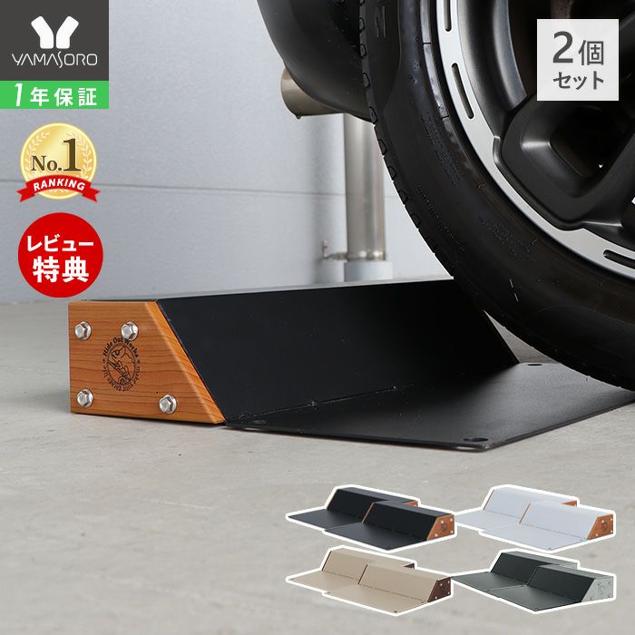 通常の車止めと違い地面との接地面が大きいため、摩擦力と車の重さが加わることでずれにくくなっています。