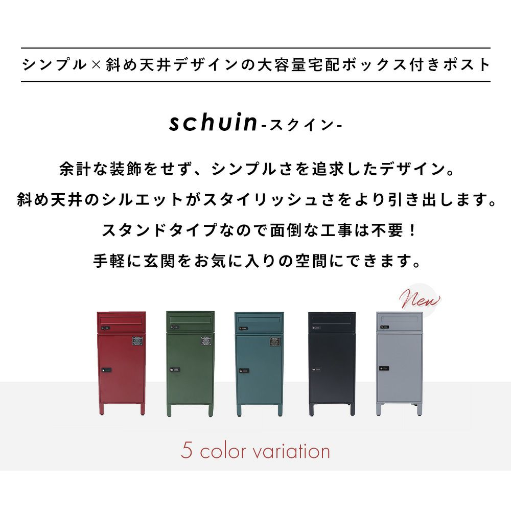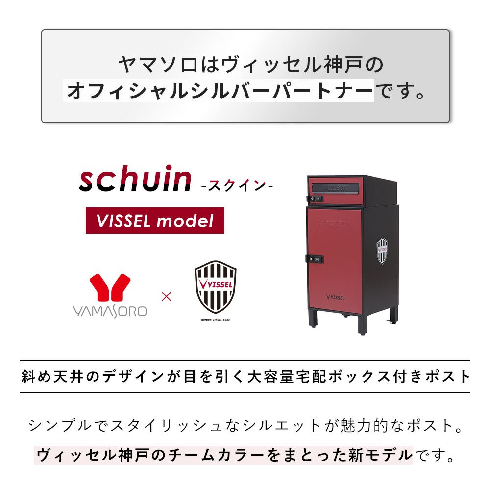 他の画像を見る 【クーポンプレゼント対象】 宅配ボックス ポスト一体型 schuin(スクイン) VISSELコラボ ヤマソロ レビュー特典 1年保証 まとめ買い割引あり ¥ 29,800 税込 お気に入り登録