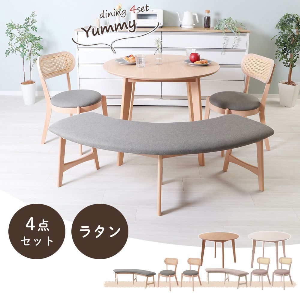 他の画像を見る ダイニング4点(テーブル+ラタンチェア2脚+ベンチ1脚)セット Yummy pai(ヤミー パイ) ヤマソロ レビュー特典 1年保証 スペシャルセール対象 まとめ買い割引あり ¥ 50,760 税込 〜 ¥ 税込 お気に入り登録