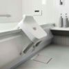 座面高はお子様も使いやすい約25cm。バスカウンターのない浴室や、浴槽が低い位置に付いている場合などどんな浴室でも使いやすいスタンダードサイズです。