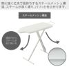 表面布:綿100% クッション材:ポリエステル 天板・脚部:スチール(粉体塗装) ボタンプレスゾーン(凹凸吸収クッション):ポリウレタンフォーム アイロン置き台・高さ調節レバー:スチール(クロームメッキ) キャップ:ポリエチレン |