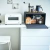 キッチンカウンターなどで雑然としがちなパンやお菓子、調味料などを隠しながら美しく収納できる収納ケース。
