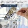 付属のフックで約250gまでのキッチンツールや輪ゴムなども掛けられます。可動式なのでお好みの場所に設置できます。