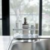 ホルダーの底は水切りになっていて、トレーの間に高さがあるので洗剤ボトルなどの底がぬめりにくいデザインです。