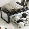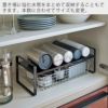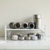 下段は高さ10cmまでのトレイやバスケット、ワイヤーかごを使えば細かなキッチン小物類をまとめて収納すると便利です。