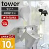 浴室の壁に浮かせて収納できるマグネット引っ掛け湯おけと座面高13cmの引っ掛け風呂イスを同色セットでお届け。同じtowerの商品で揃えることで統一感のあるおしゃれな空間になります。