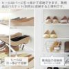ヒールはバーに引っ掛けて収納できます。シューズ用品はバスケットにまとめて収納すると便利です。※バスケットは別途ご用意ください。