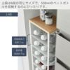 幅約20cmのスリムサイズ。冷蔵庫横や、キッチンワゴン横などの空きスペースに設置できます。