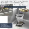 三角コーナーのフレーム上部の内寸は幅約20×奥行10.2cmあり、野菜などの皮をむきながら直接捨てやすいワイドサイズ。スクエアタイプのフレーム上部は幅約9.5×奥行9.5cmあり、コンパクトながらゴミを捨てやすいサイズです。