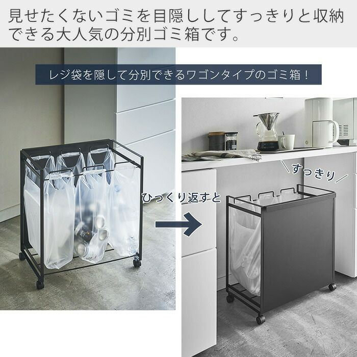 山崎実業 公式 目隠し分別ダストワゴン 3分別 タワー