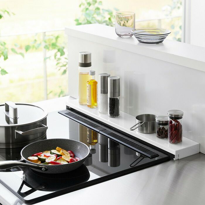 山崎実業 公式 奥行伸縮排気口カバー タワー 75cmコンロ用