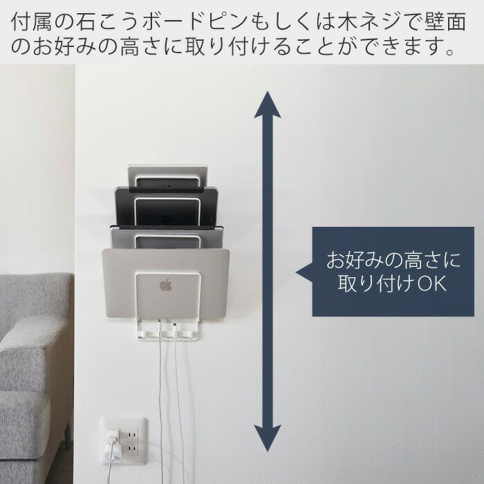 山崎実業 公式 石こうボード壁対応ウォールタブレットホルダー タワー 4段