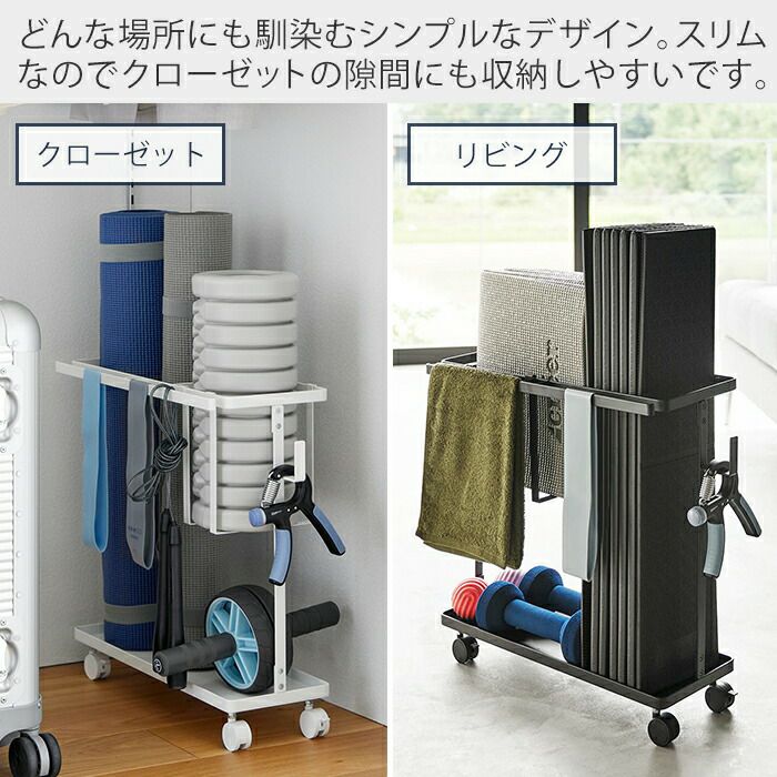 山崎実業 公式 キャスター付きフィットネスグッズ収納ラック タワー