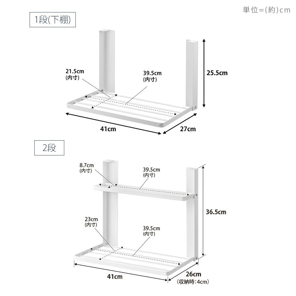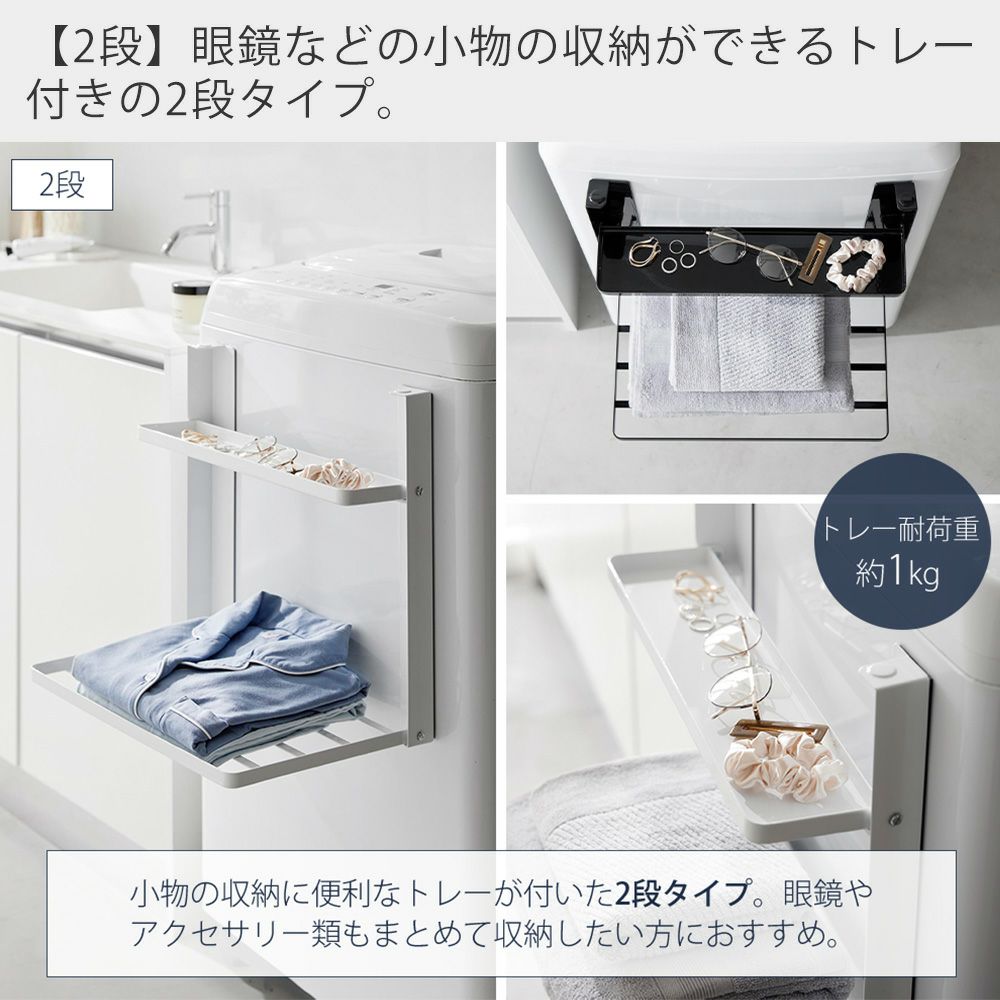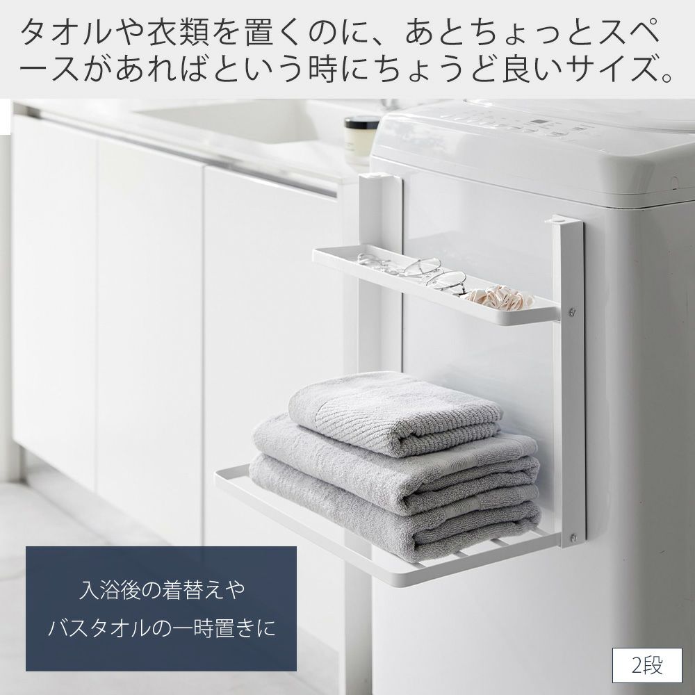 山崎実業 公式 洗濯機横マグネット折り畳み棚 1段 2段 使いやすい高さに開く タワー