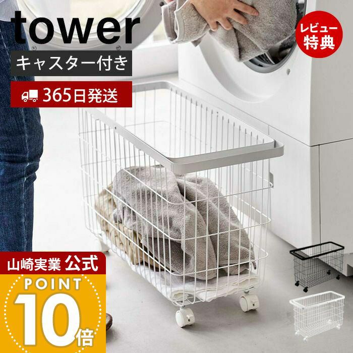 山崎実業 公式 ランドリーバスケット タワー キャスター付き ワイド&ロー