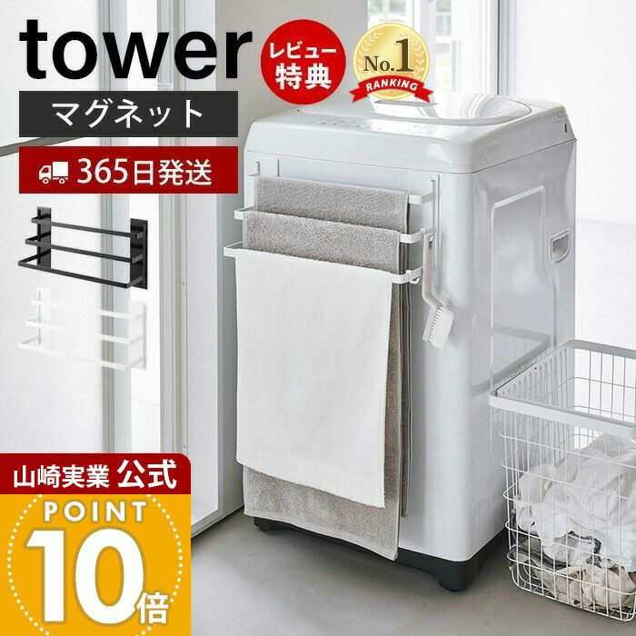 山崎実業 公式 洗濯機前マグネットタオルハンガー タワー 3連