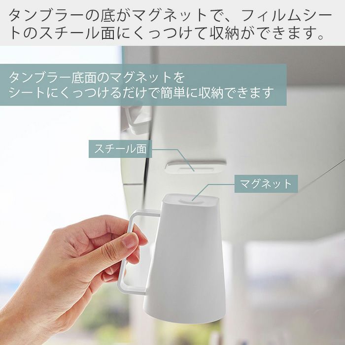 山崎実業 公式 フィルムシート洗面戸棚下マグネット取っ手付きタンブラー ミスト