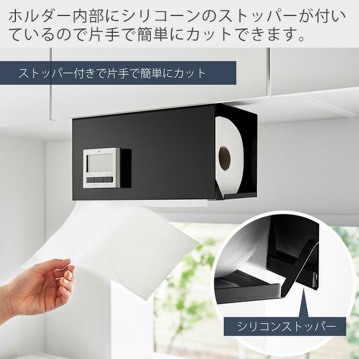 山崎実業 公式 片手でカット戸棚下キッチンペーパーホルダー タワー カバー付き S