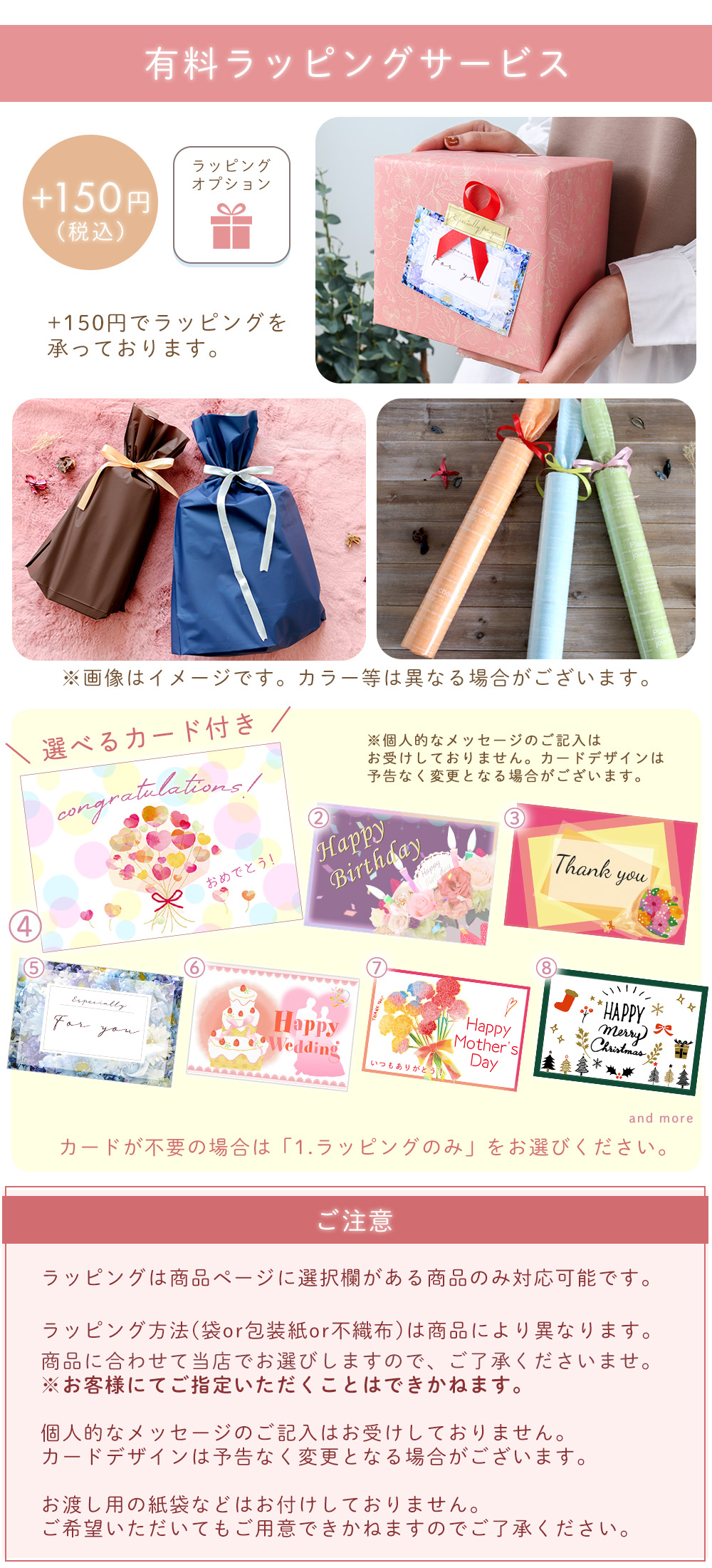 ※包装紙、袋は商品ごとに決まっておりますので変更できかねます。