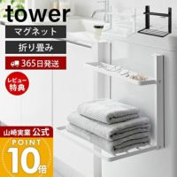 マグネットで簡単に洗濯機にくっつけることができます。バスタオルや着替えを準備しておける棚に加え、外したアクセサリーやメガネを置いておけるトレイがついていて使いやすいです。使わないときは畳むことができるので邪魔にもなりません。 -
