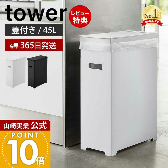 山崎実業 公式 スリム蓋付きゴミ箱 タワー