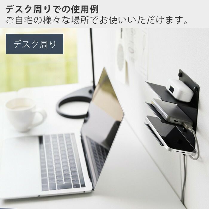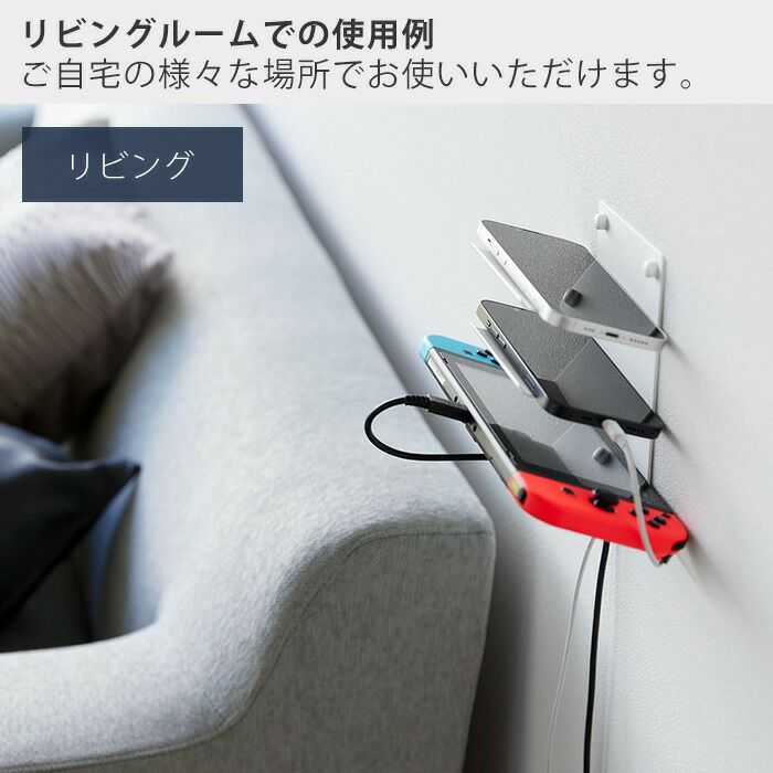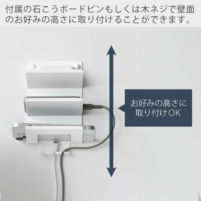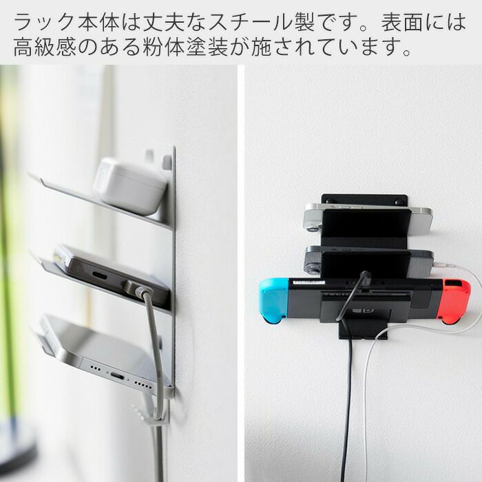 山崎実業 公式 ウォールモバイル充電&収納ラック タワー 3段 石こう対応