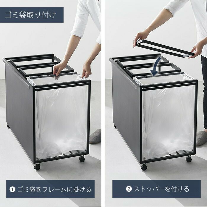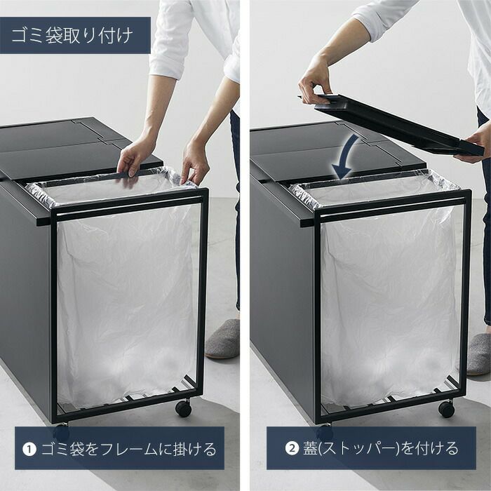 山崎実業 公式 目隠し分別ダストワゴン タワー 45L 2分別