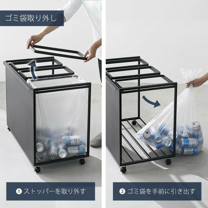 山崎実業 公式 目隠し分別ダストワゴン 3分別 タワー