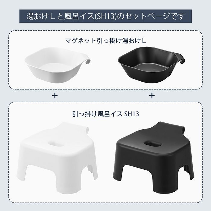 山崎実業 公式 引っ掛け風呂イス キッズ用 SH13 マグネット&引っ掛け湯おけ L セット タワー