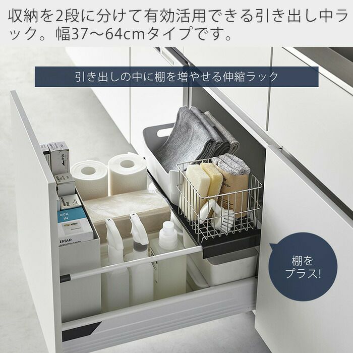 山崎実業 公式 伸縮キッチン引き出し中ラック タワー