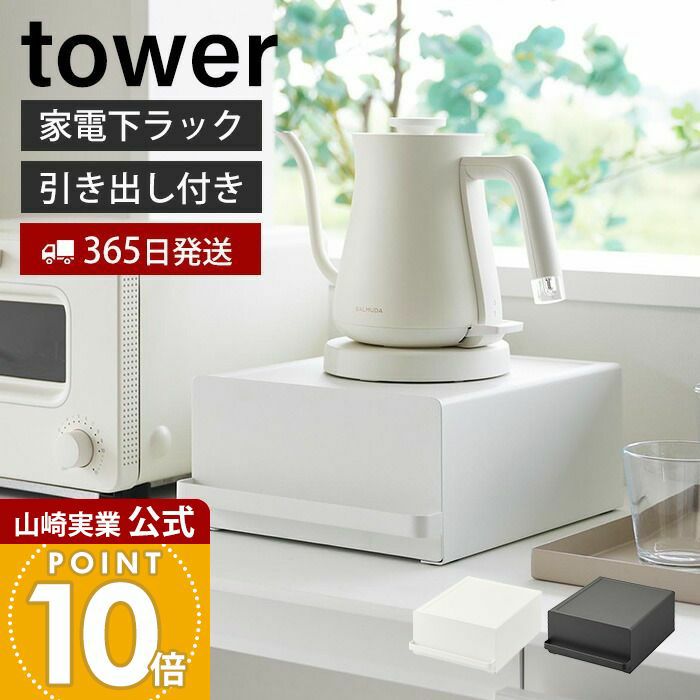 山崎実業 公式 引き出し付きキッチン家電下ラック タワー