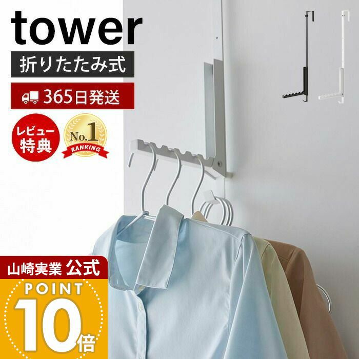 山崎実業 公式 使わない時は折り畳める衣類スチーマー用ドアハンガー タワー