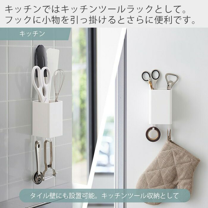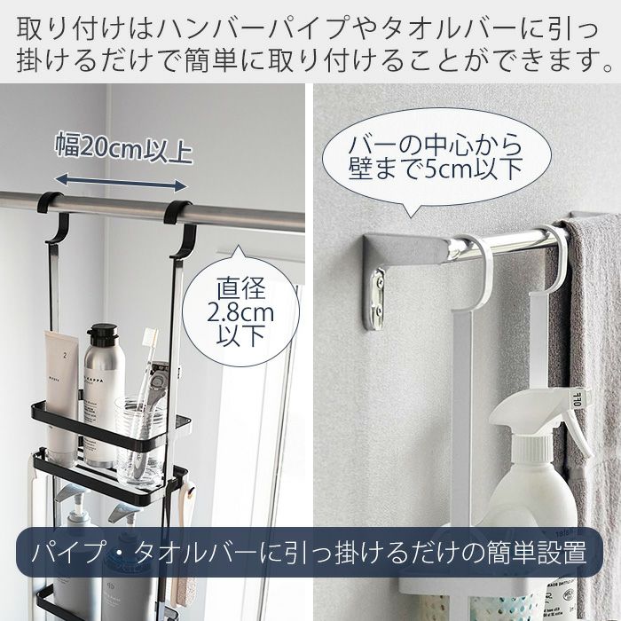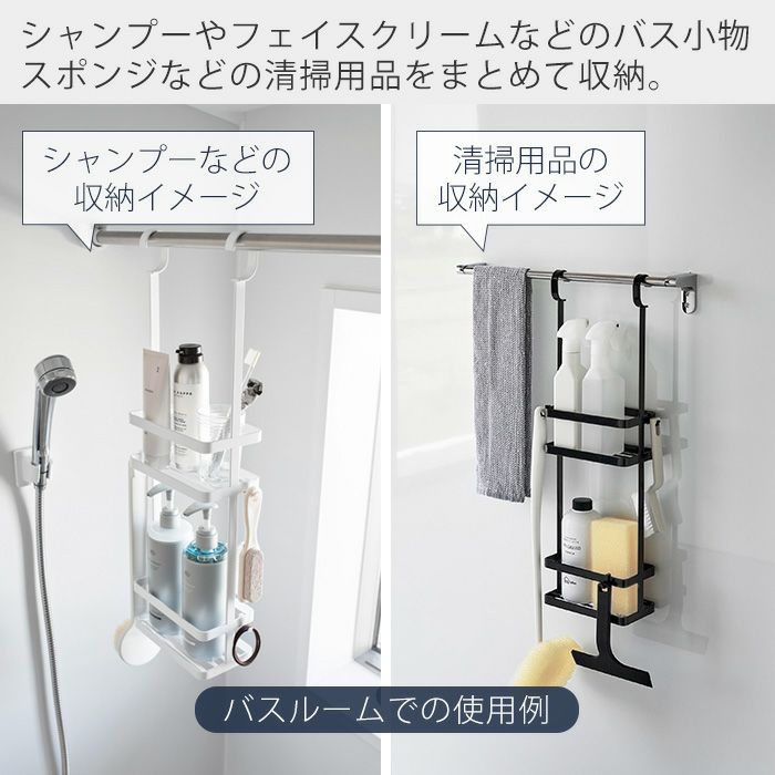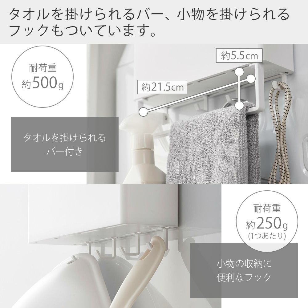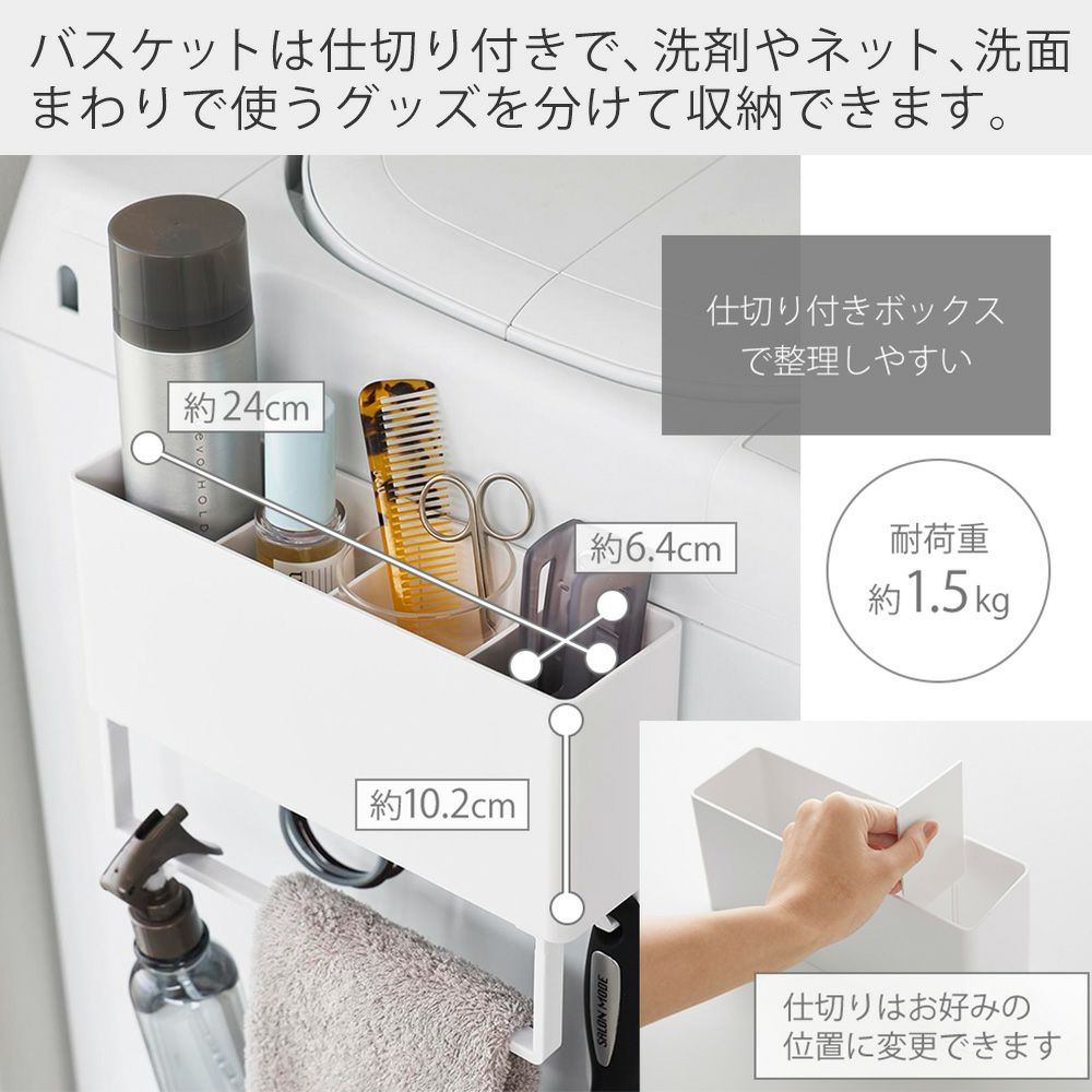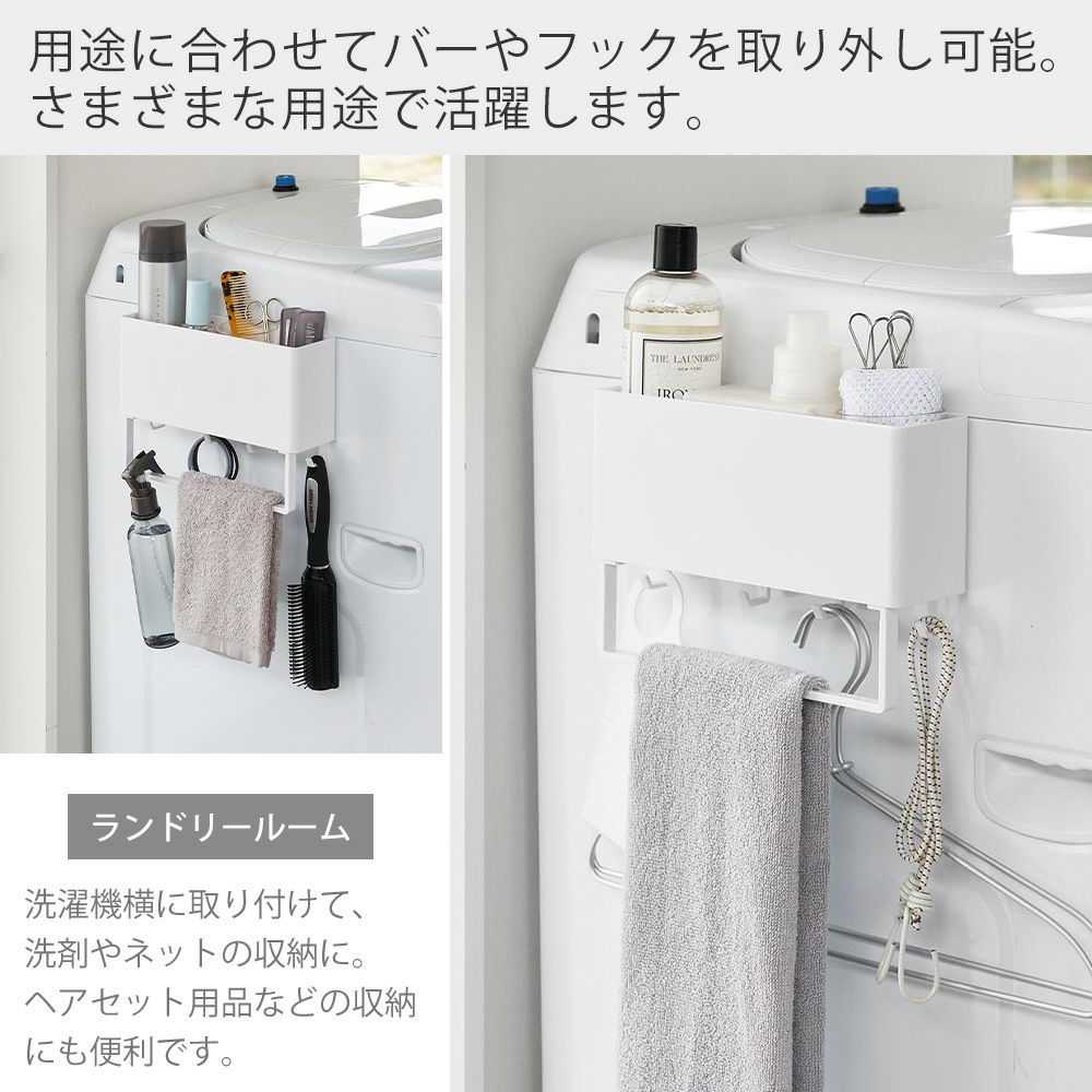山崎実業 公式 マグネットストレージバスケット タオルバー&ホースフック付き プレート