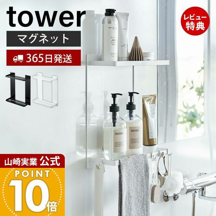山崎実業 公式 マグネットバスルームチューブ&ボトルホルダー タワー M ダブル
