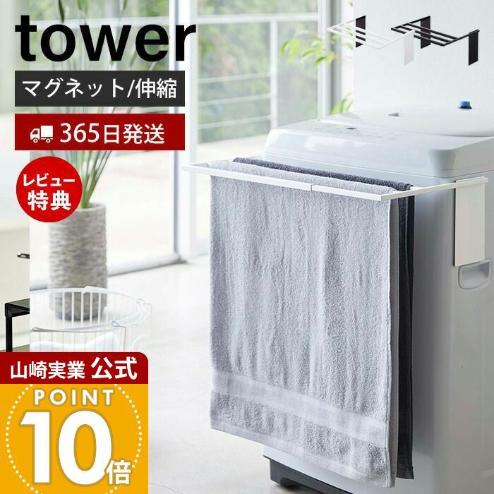 ヒルナンデスで紹介!山崎実業 公式 マグネット伸縮洗濯機バスタオルハンガー タワー